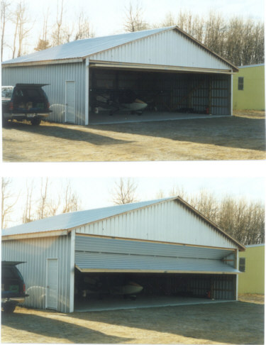 leaving 2' of door sticking out the front of the hangar in the open