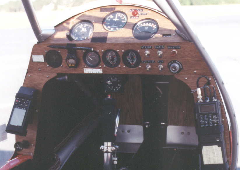 Custom cockpit. Instrument panel made of wood wall paneling with