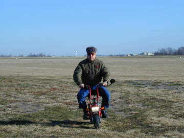 Malcolm on his "Scarlet Harlet" airport scooter