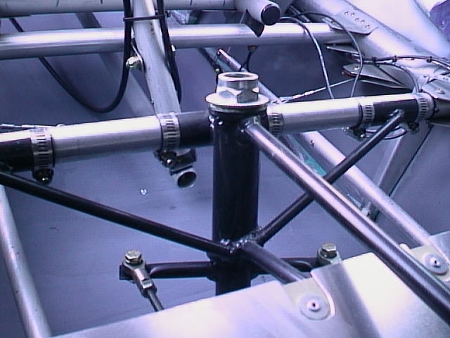 under the root tube where those two fuselage tubes attach to the root tube is an Alinco '