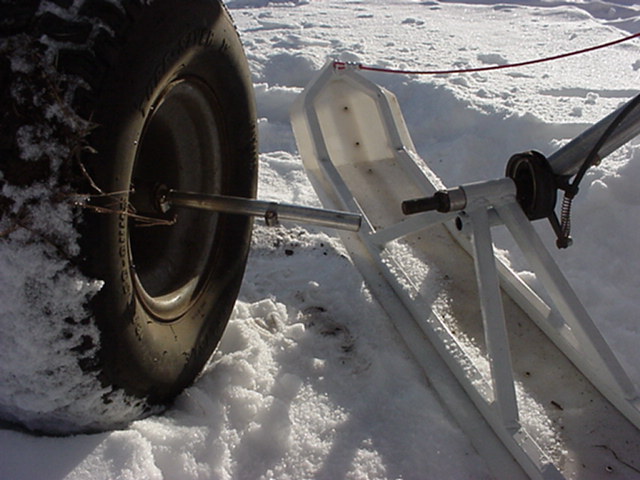 axle into the tube. Tire size effects ski ground clearance. Wheels shown